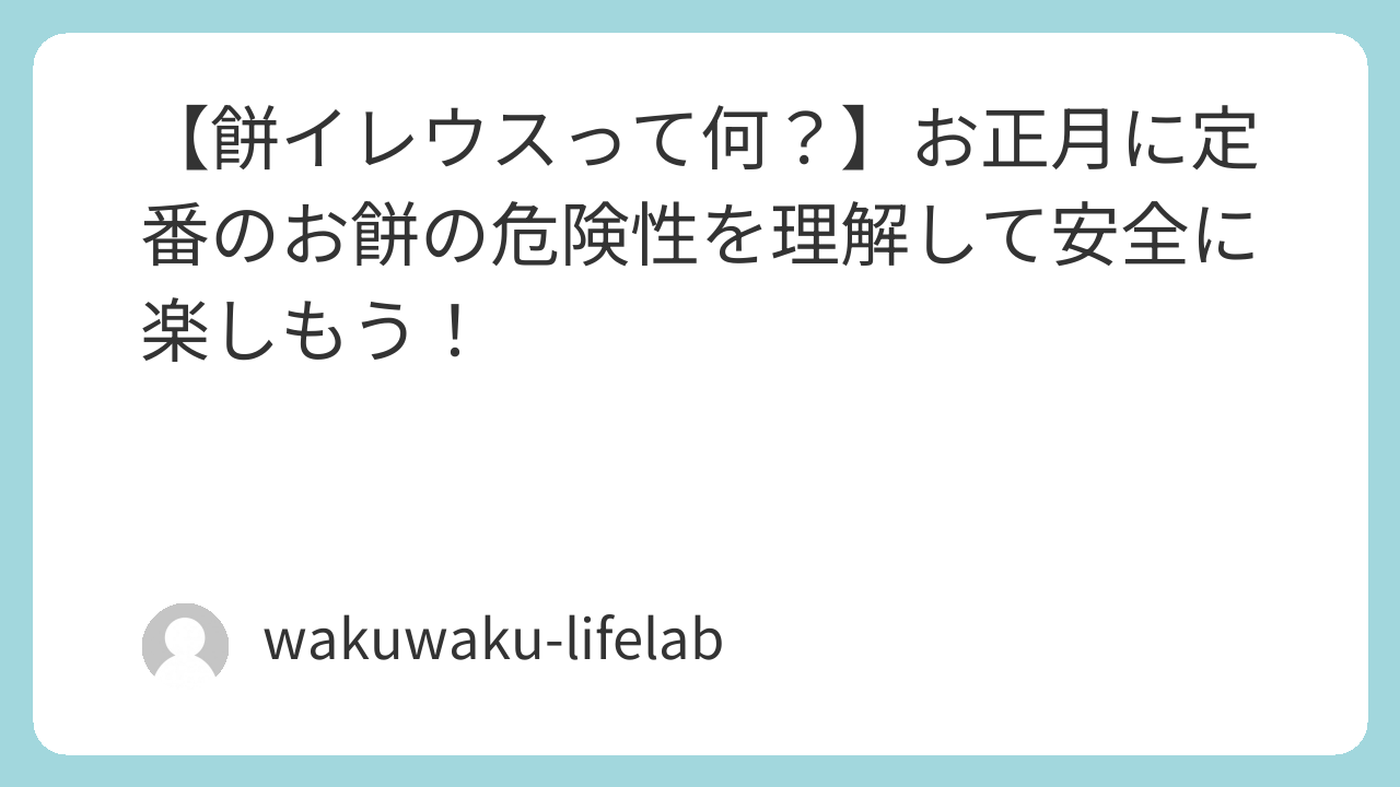 お正月の食文化を守るためにも、ぜひ家族や高齢の方と情報を共有してください。