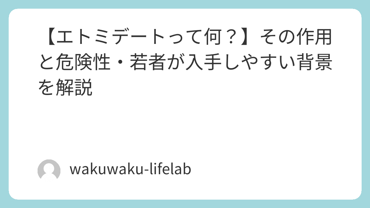エトミデートの作用や医療での使用、類似薬物、そして若者が入手しやすい背景を解説。依存や乱用の危険性にも触れ、安全な知識習得を促します。